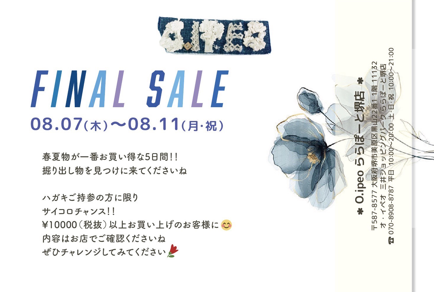 くらだしのお知らせ(ヴィアあべのウォーク店)、FINAL SALEのお知らせ(ららぽーと堺) 2025.8.7-8.11