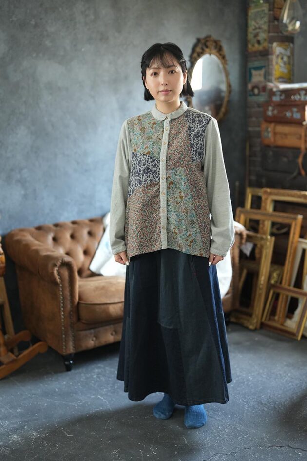 7012-BN_パッチワークコール天プリントブラウス_¥18,480(税込)