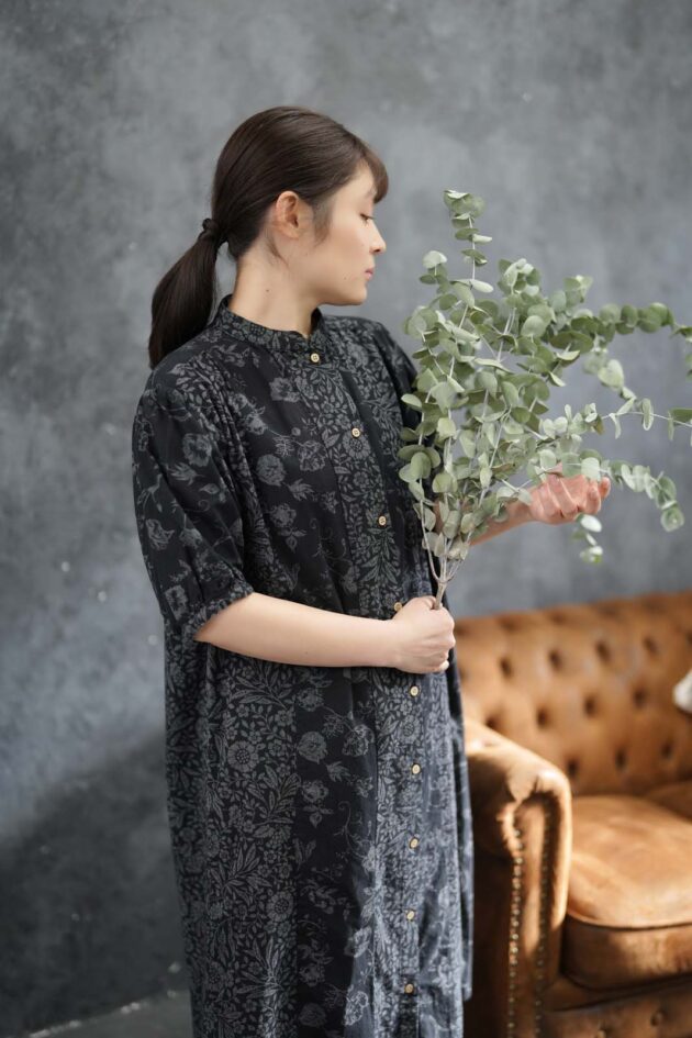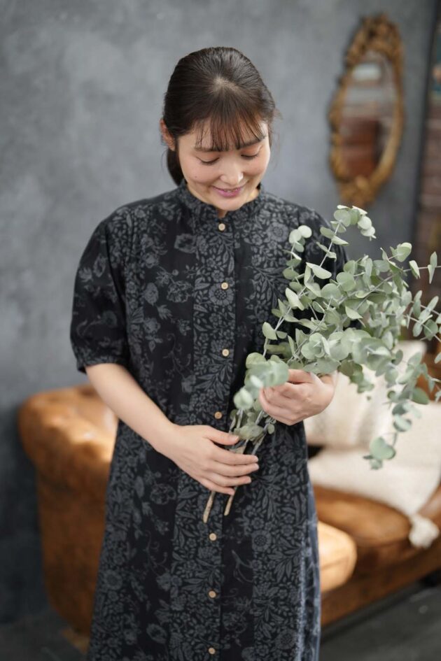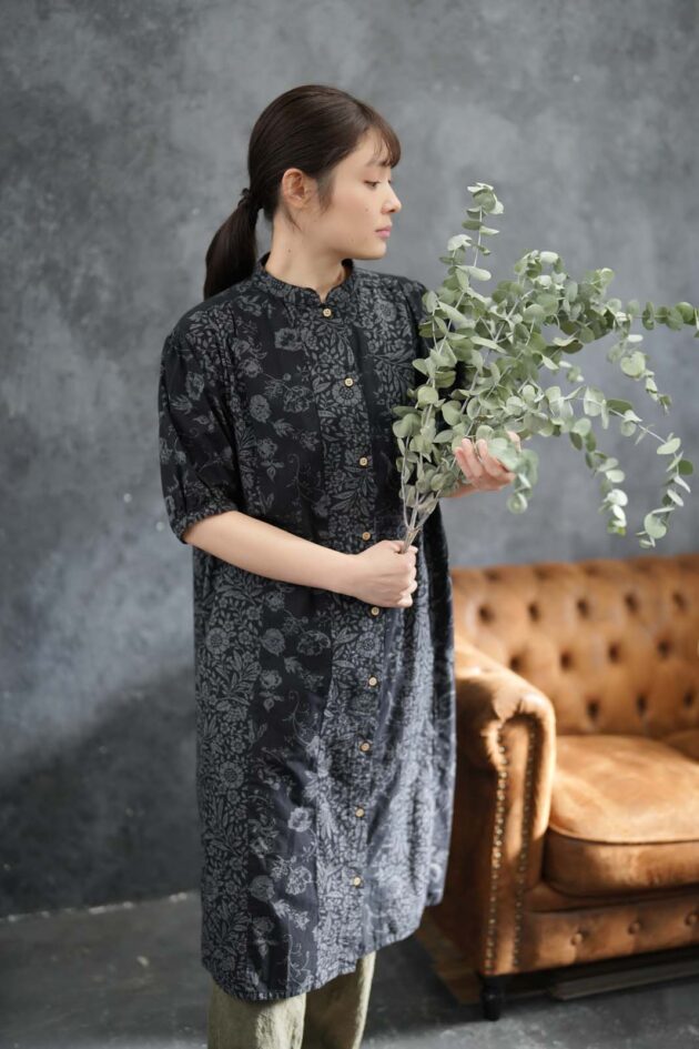 9105-AN_マンガン絣チュニックO.P(身丈108)(5分袖)_¥29,700(税込)