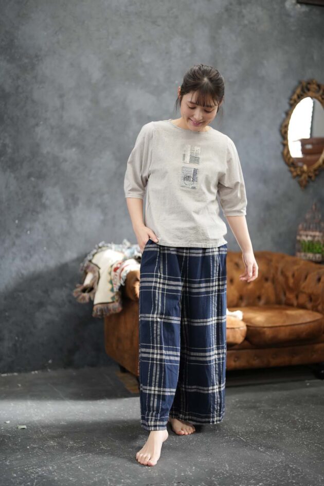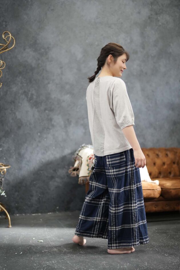 9108-AN_先染チェック フレアーパンツ_¥29,700(税込)